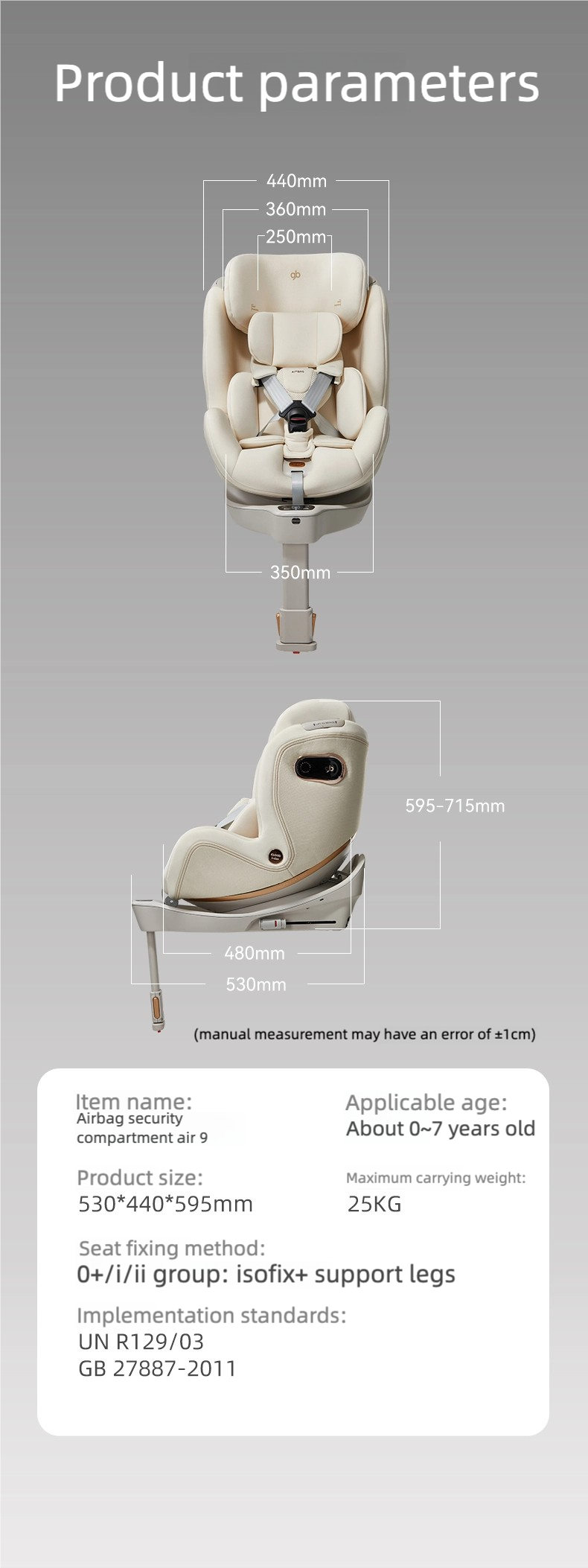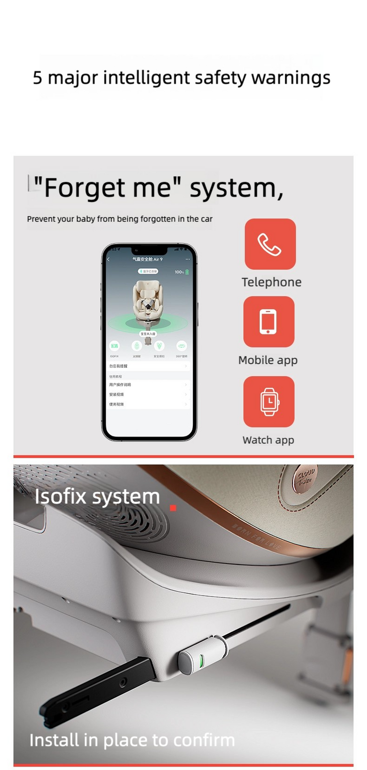 مقعد السيارة الذكي Air9 مع حجرة أمان الوسادة الهوائية gb