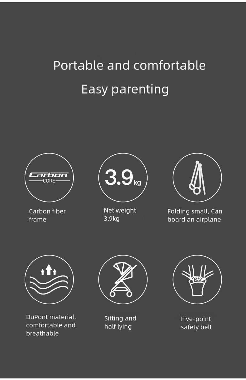 عربة أطفال من ألياف الكربون من جي بي فين، خفيفة الوزن حتى 3.9 كجم