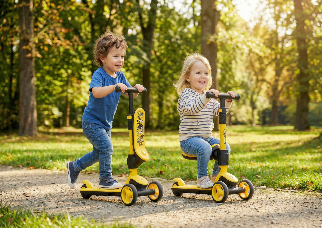 Safe and non-slip, ride with freedom. GB sit-and-stand scooter, durable and protective for every childhood journey.