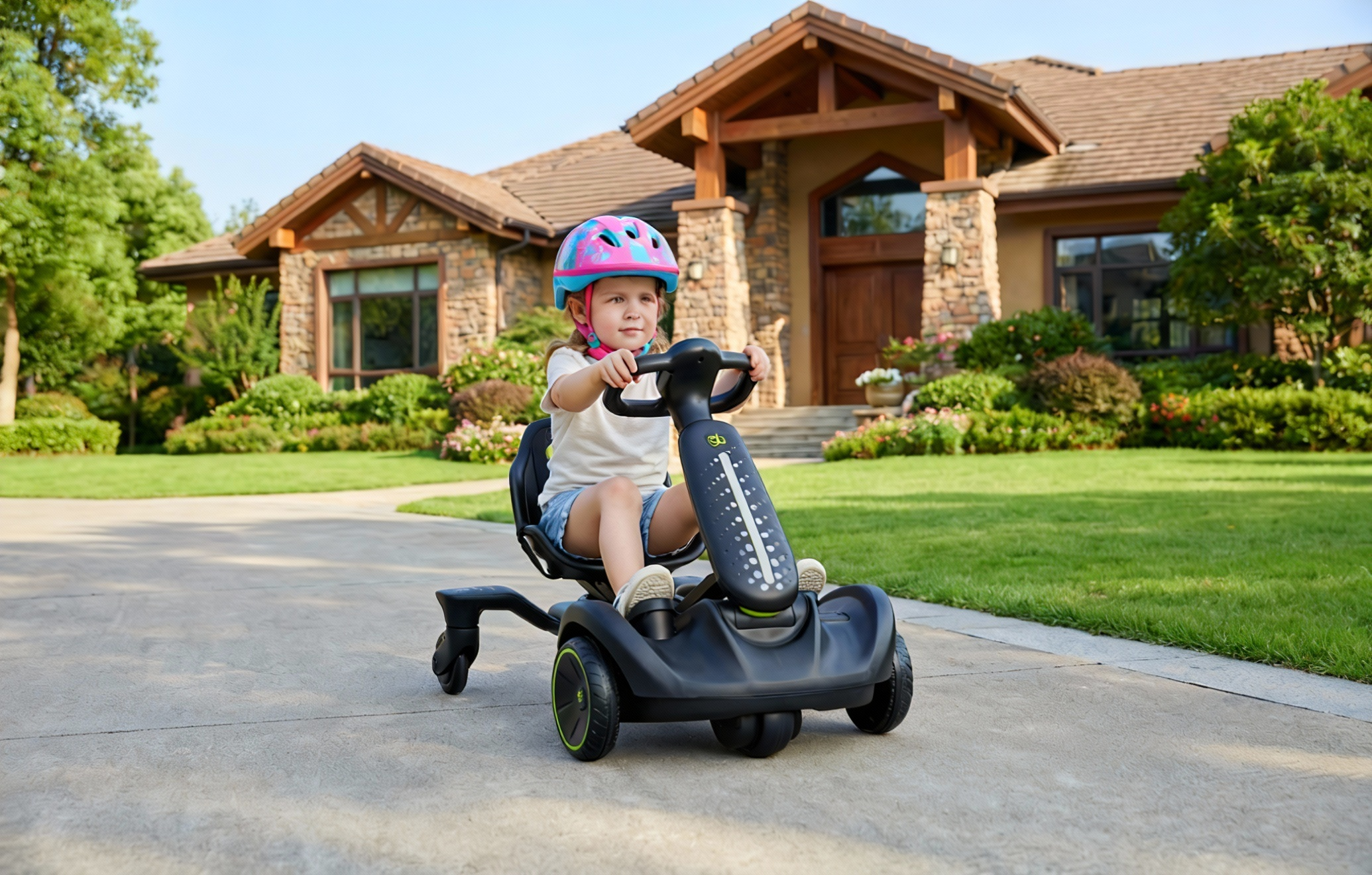Dazzling lights move with the music, enjoy the thrill of drifting. GB electric go-kart, one-button extension from age 3 to 8, accompanying growth, no tipping over, ensuring a stable and safe ride every time.
