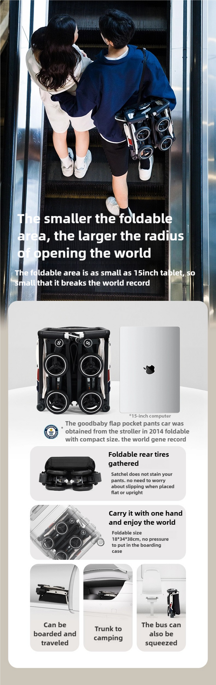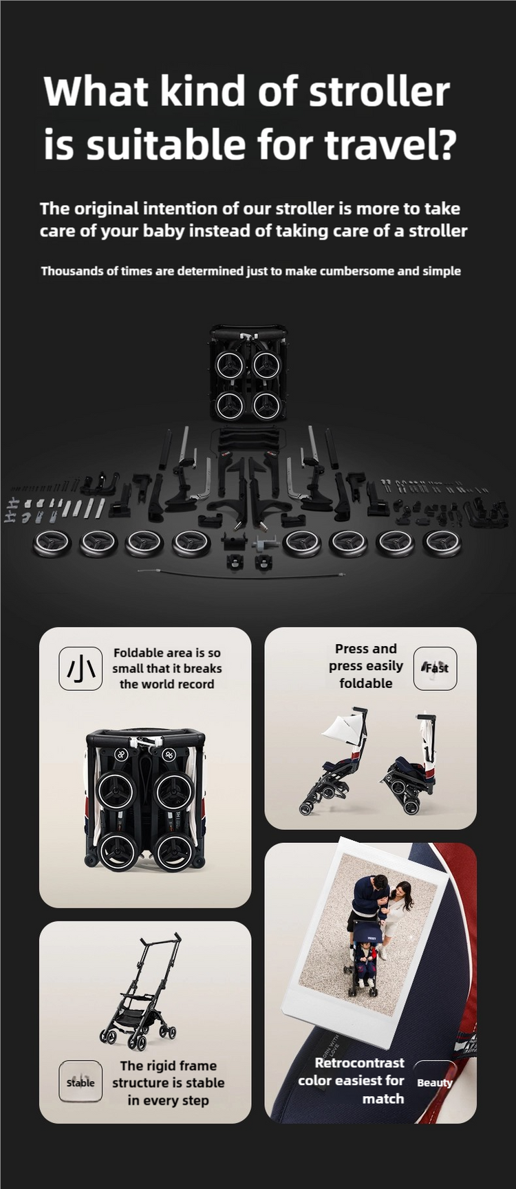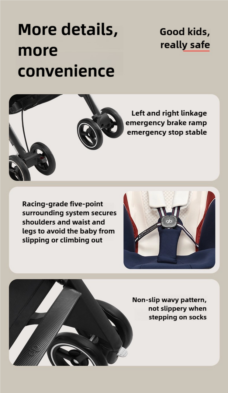 A more luxurious travel experience. Folded within one seconds, this ultra-compact stroller is easy to stow in an overhead compartment, so you can relax and enjoy the flight.
